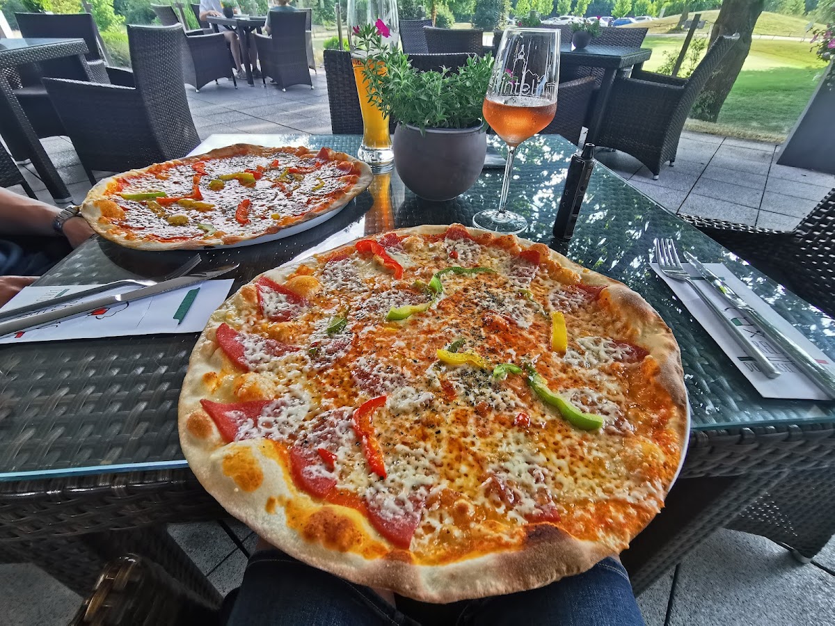 The restaurant shines not just in quality but also in variety. Reviews from satisfied patrons consistently mention a robust drink and food menu catering to diverse preferences. Karl Smits, a repeat visitor, enjoyed the oversized handmade pizzas, particularly the Diavolo, noting its spicy kick. The inviting ambiance, offering breathtaking views of the adjacent golf course, amplifies the dining experience—a true oasis of calm.